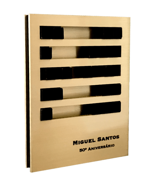 Respeitando a intenção de estímulo ao pensamento no futuro, a medalha elege a ideia de caminho a percorrer como símbolo comemorativo primário. O elemento de pigmentação mais escura representa esse caminho, que se dirige à abertura no corpo da medalha que pretende representar a libertação e as oportunidades indeterminadas de um futuro promissor. A presente solução formal foi desenhada para permitir a sustentação da medalha na posição vertical sem necessidade de suporte, independente e íntegra.