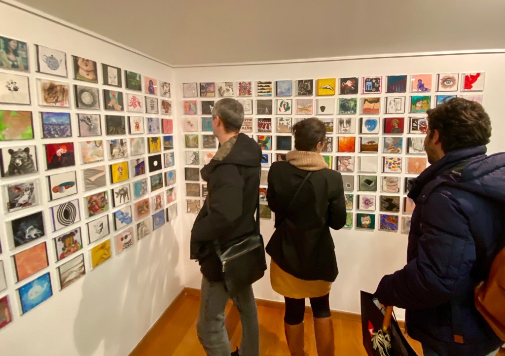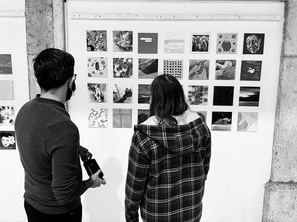 A tradicional exposição de dezembro “12×12” voltou ao Mercado de Santa Clara, rompendo com a tradição que lhe valeu de inspiração para o nome. Desta vez, os artistas foram desafiados a criar sobre telas cartonadas de 20×20 cm, representando a libertação dos confinamentos a que estiveram sujeitos devido à pandemia de COVID-19. Assim, entre os dias 8 e 12 de dezembro, centenas de obras de dezenas de artistas estiveram expostas e à venda. Ficam abaixo algumas fotografias, e a vontade de voltar para o ano.