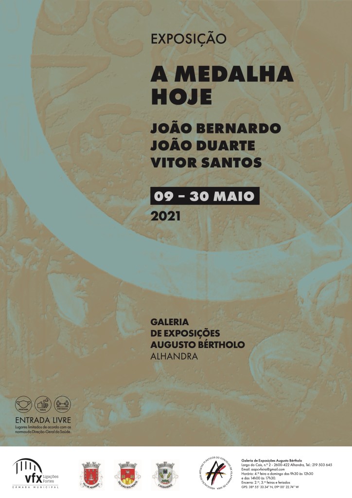 Entre os dias 9 e 30 de maio de 2021, decorreu a exposição “A Medalha Hoje”, na Galeria Augusto Bértholo, em Alhandra. Com os escultores João Duarte e Vítor Santos, apresentei vários trabalhos de medalha contemporânea.